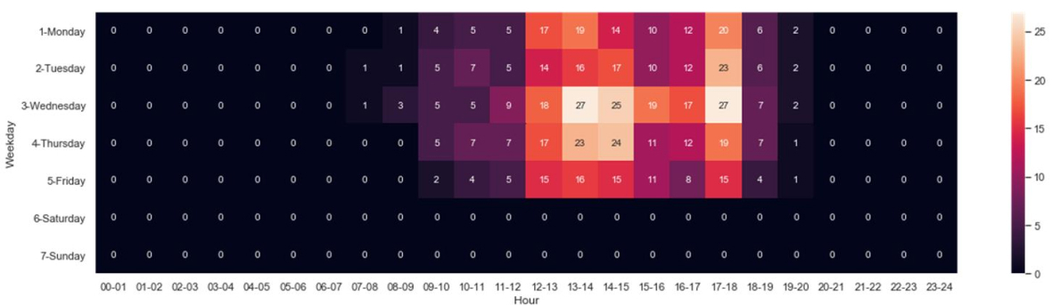 Cafeteria load during a week (hourly)